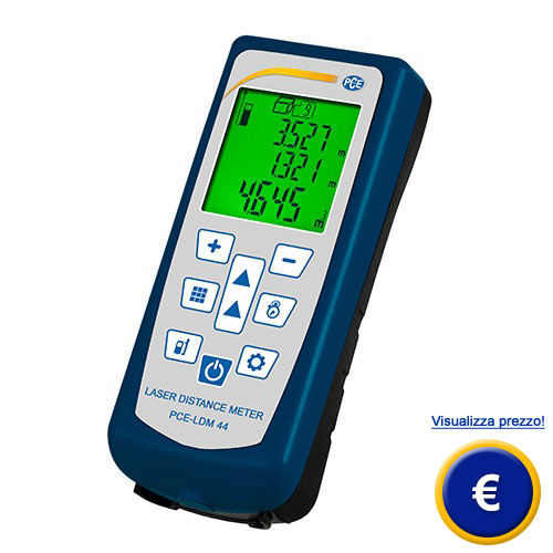 Il misuratore di distanza laser PCE-LDM 40 è ideale per semplici misure delle distanze. Il misuratore di distanza laser PCE-LDM 40 misura fino a 40 metri. Tutti i valori misurati vengono visualizzati in un display retroilluminato ad alta leggibilità. L'utente può scegliere le unità di misura del misuratore di distanza laser PCE-LDM 40: metri, pollici e piedi. Oltre alla misura della distanza, può determinare anche l'area di una superficie ed il volume di un determinato spazio. Con il misuratore di distanza laser PCE-LDM 40 può anche effettuare somme e sottrazioni delle misure effettuate. Per una migliore documentazione delle distanze, possono essere salvati fino a in 99 posizioni di memoria nel misuratore di distanza laser PCE-LDM 40. Per ulteriori informazioni sul misuratore di distanza laser PCE-LDM 40 si metta in contatto con noi al numero +39 0583 975114 o utilizzi il nostro servizio di contatto. I nostri tecnici e ingegneri la sapranno consigliare su questi misuratori di distanza e sugli altri nostri prodotti: sistemi di regolazione e controllo, misuratori, strumenti per laboratorio o bilance di PCE Instruments. |